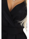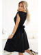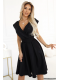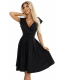 348-10 SCARLETT rozkloszowana sukienka z kopertowym dekoltem i paskiem - CZARNA Z BROKATEM S