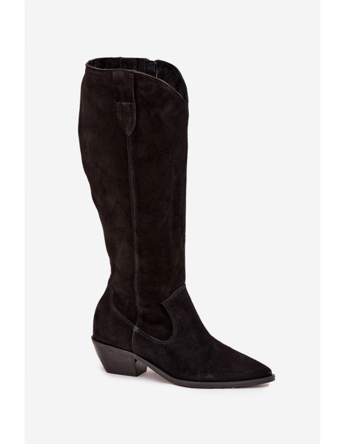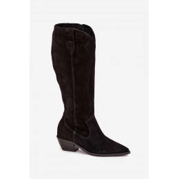 Kozaki Kowbojki Z Naturalnego Zamszu Ocieplane Zazoo 4225 Czarne Rozmiar: 38