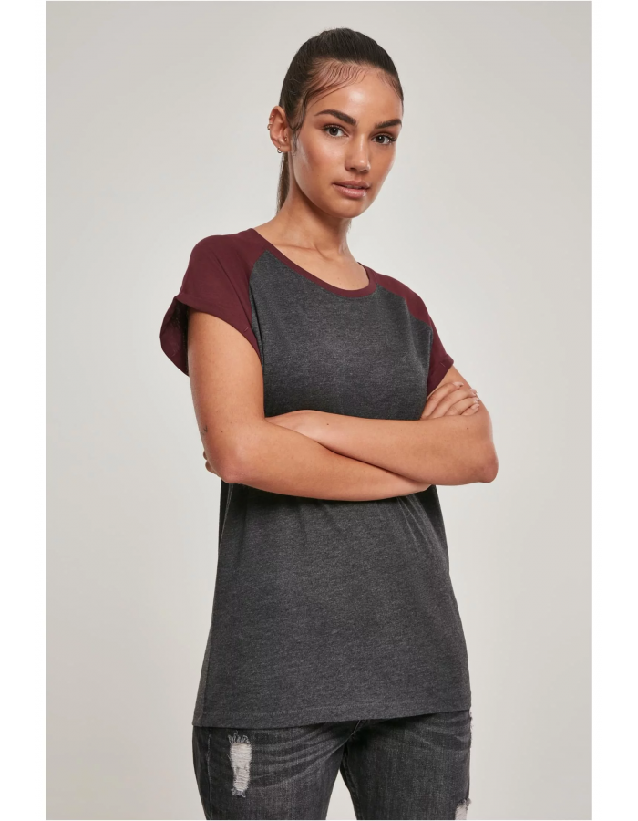 Ladies Contrast Raglan Tee charcoal/redwine L