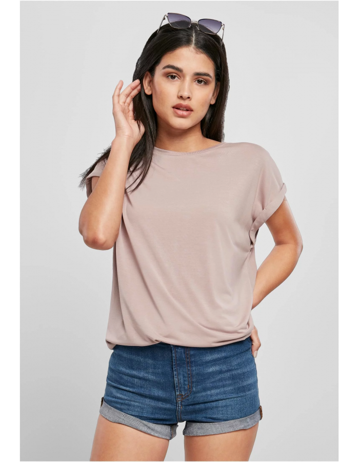 The Ladies Modal Extended Shoulder Tee is a versatile and stylish basic that no wardrobe should be without. This long-cut women's T-shirt from Urban Classics impresses with its relaxed style, which is emphasised by the round neckline and the slanted sleeves. The loose fit ensures a comfortable fit and a casual look. Made from a pleasant modal jersey blend of 77% modal and 23% polyester, this T-shirt combines comfort with durability. Available in different colours and in sizes XS to 5XL, it adapts to any style and is ideal for everyday wear and special occasions.