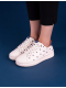 Każda wersja kolorystyczna sneakersów ma swój własny charakter – od klasycznej czarno-białej elegancji, przez figlarny fiolet, po delikatny róż i nowoczesny szary minimalizm. Wyższa podeszwa dodaje nowoczesnego wyglądu i komfortu na cały dzień.