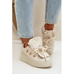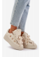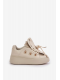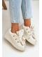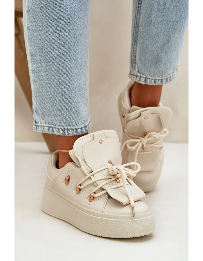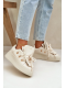 Damskie sneakersy wykonane z wysokiej jakości eko skóry to idealny wybór dla miłośniczek modnych rozwiązań. Osadzone na masywnej platformie, dodają kilku centymetrów wzrostu, jednocześnie zapewniając stabilność i komfort noszenia. Wkładka z miękkiej pianki zapewni wygodę nawet podczas długiego użytkowania. Ten stylowy fason idealnie dopełni wiele casualowych stylizacji! Przy wyborze rozmiaru prosimy kierować się tabelą rozmiarów.