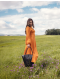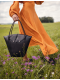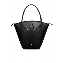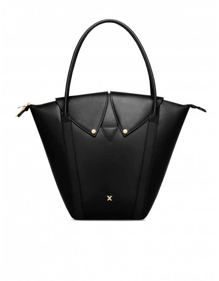 Ta większa wersja torebki z kolekcji Laboratory - Między światami została zaprojektowana na codzienny rytm miasta. Dzięki sztywnej formie i dużej przestrzeni wewnętrznej zmieści się w niej wszystko, czego potrzebujesz – laptop, kosmetyki i terminarz. Zapięcie z klapą w kształcie kołnierzyka koszulowego nadaje torebce elegancki i lekko formalny wyraz, ale pozostaje delikatnie kobieca. Delikatnie wytłoczony motyw „Vuch × Pavel Berky" w kształcie X symbolizuje skrzyżowanie – wybór między kierunkami, który każda kobieta podejmuje na swój sposób.